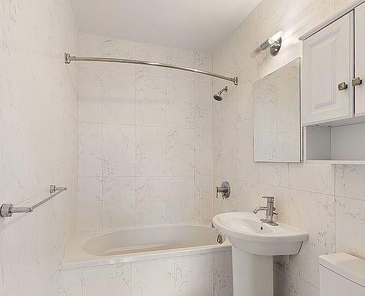 Bathed in natural light from oversized windows, residence 3F boasts high ceilings, eastern exposure with tree top/skyline views and generous storage space throughout. The open kitchen features marble countertops and GE Profile stainless steel appliances, including a gas range, dishwasher and built-in microwave. The tranquil bedroom includes another spacious closet and an en-suite bathroom clad in floor-to-ceiling tile, a large Kohler soaking tub/shower, pedestal sink and modern fixtures. High-speed cable and internet hookups and mahogany stained oak floors add comfort and ease to this charming Harlem home.