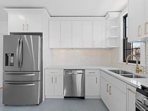 Open the door and enter an expansive sun drenched living/ dining area which provides great space for entertaining. Tucked away towards the rear of the property the elegant kitchen any chef will love awaits you. Kitchen features floor to ceiling custom cabinetry, adorned with a full fleet of stainless steel appliances, and leads out into lush rear yard and designated parking garage. Powder room on first floor for your guest.