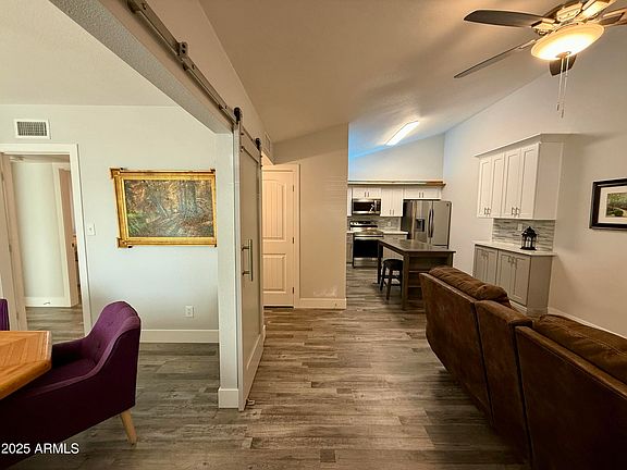 Welcome to this beautifully updated 3/2 townhouse, walking distance to Sloan Park, Mesa Riverview, and Riverview Park! Whether you're catching a spring training game, enjoying a day at the park, or heading out for shopping and dining, everything you need is right around the corner. Inside, you'll love the modern finishes throughout, including a stylish kitchen and updated bathrooms. One bedroom features charming barn doors and can be used as a home office, guest room, or a den. This single-level townhouse also comes with all appliances—including a fridge, washer, and dryer—so it's move-in ready from day one. With easy freeway access and a location that's tough to beat, this gem is a great find in a thriving part of town.