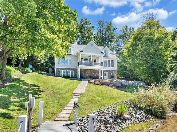 Welcome Home to Lakefront Living at its best. This stunning custom-built home is nestled in the prestigious Park Place community, offering a perfect blend of elegance, comfort, and breathtaking views of Smith Mountain Lake. From the moment you arrive, you'll appreciate the meticulous attention to detail, with an abundance of stonework, Trex decking, outdoor lighting, and an irrigation system that keeps the beautifully landscaped yard looking its best year-round. Step inside through the welcoming foyer, where a half bath is conveniently located for guests. The foyer opens up to an expansive living and dining area, bathed in natural light with direct access to the rear deck, providing stunning lake views. It's the perfect spot for relaxing or entertaining. The eat-in kitchen features granite countertops, stainless steel appliances, and plenty of space to gather. The spacious master suite on the main level offers serene lake views, walk-in closets, and a private retreat from the hustle and bustle of daily life. Upstairs, you'll find two additional bedroom suites, each offering privacy and comfort, along with a versatile bonus room that can be used as an office, media room, or play area. The lower level boasts another bedroom and full bath, providing ample space for guests or family. The oversized two-car garage is both heated and cooled, making it the ideal space for storage or projects. The backyard was designed with relaxation in mind, featuring custom stonework, a cozy fire pit, and easy access to your private covered boat dock. The dock includes two jet ski slips and a floater, perfect for enjoying everything Smith Mountain Lake has to offer. Best of all, Smith Mountain Lake Community Park is just minutes away, offering swimming, a playground, hiking trails, and fishing - everything you need for outdoor fun. Don't miss this rare opportunity to own a luxurious lakefront home in one of the most desirable communities around. Boat and jet skis available. Home could be purchased furnished with an acceptable offer. Schedule your private tour today!