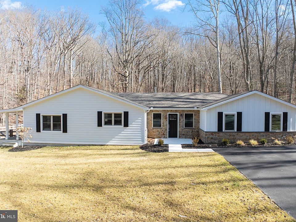 Welcome to 555 Reeds Rd in Downingtown School District, located on almost 2 acres of private, level land. This Hardie plank & stone front ranch home has been meticulously renovated & expanded with stylish details throughout, to now be a 4 bedroom and 3 full bathroom home. From the newly paved driveway, you'll walk past the freshly landscaped exterior to the front patio. Upon entering the home to your left is the beautiful & spacious living and dining area with plenty of natural sunlight in addition to numerous recessed lights. The kitchen features stainless steel appliances and range hood, quartz countertops, an island with seating, modern light fixtures, subway tile backsplash, and durable laminate floors. Enjoy the scenic views from multiple windows and the sliding glass doors to the back patio within the fenced yard, lined with trees. This area of the home also includes the dining area, and the carpeted living room with built in shelves, a full bathroom and an additional room perfect for an office or possibly another bedroom. An additional exit door leads you to a covered flagstone porch off the side of the home. Going back past the front entry to the new addition, you'll find the main bedroom and en suite bathroom with double sinks, granite counter, a tiled stall shower, and tile floor. Two additional bedrooms, a full hall bathroom also with double sinks and shower/tub combo, and the laundry closet, complete this portion of the home. Not only has the entire interior of the home been renovated, but the exterior also has a new roof, new gutters, and new siding (Hardie plank fiber cement siding in front, and vinyl siding on the remaining sides). The propane tank for the the new 2 zoned HVAC system is owned and will remain with the property. There is also a brand new septic system, new water heater, and water treatment system. Also, the home has hookups for a whole house generator. From the back of the home, you can access the bilco doors leading to a small basement where the water heater and heater are located. Privacy and scenic views abound in this tranquil property that's close to Marsh Creek State Park and the East Branch of the Brandywine. Everything is renovated and ready for you to move right in!
