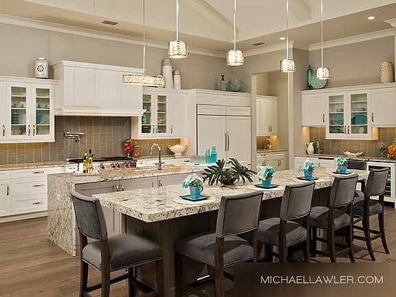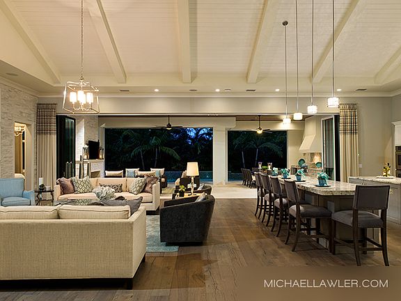 H.15782 - Absolutely move-in condition. Better than a new construction home. Absolutely stunning from the minute that you open the front door to the West Indies styled home. Wide plank hardwood flooring throughout the main areas of home. Gourmet kitchen with double islands, beverage center, bar, and butler's pantry. Sub-Zero, Wolf, JENNAIR & kitchen-aid appliances. Huge great room with stacked stone accent wall, large TV viewing wall, art niches, vaulted ceiling. Den is accented with large built-ins, street view and coffered ceiling. Owner's suite is perfectly designed to be flooded with natural lighting. Spa-like bath area has an extra washer & dryer, built-in linen closets, morning bar and ample storage. Custom Kohler shower system, 6-foot floating tub, 2 custom closets with built-ins all done in coastal colors. 3 large guest suites with en-suite baths and double closets. Custom folding doors by LaCantina open to the covered lanai space. The outdoor oasis embodies the Florida lifestyle with a large pool, spa, fire accents, waterfalls, lush landscaping and fenced yard. Large outdoor summer kitchen is ready for grilling. Amazing home!!