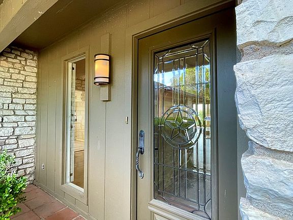Cozy fireplaceSplit floorplanOverlooking the riverLimestone patioAuthentic limestoneCircle driveXeriscaped and mature trees