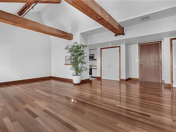 Lush courtyard with gardensGated parking spacesIn-unit laundryExposed brickOversized windowsSoaring wood-beam ceilings