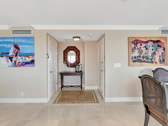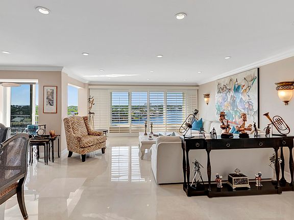 Beautifully remodeled apartment with all the conveniences of modern living. Kitchen opens up to fully incorporate the terrace where interior doors and windows were removed, and cement poured to level floor with dining room & living room. Electric shades on the terrace for ease allowing the most unbelievable endless water vistas from every room. Gaze upon the Atlantic Ocean, the Intracoastal, and many of Delray's pristine estate homes on the barrier island. Plantation shutters on every other window throughout. Part of master closet was brilliantly utilized in expanding the master bath leaving adequate space in your walk-in. Porcelain tile throughout. Brazilian Cherry Wood flooring in both bedrooms. Modern linear air-ducts replaced throughout. Secondary hall-kitchen door access was approved, removed and replaced with custom cabinetry for exceptional storage. Community amenities offered are: outdoor heated pool, BBQ, Tiki Bar, Dining Area, Kayak access to ICW, Clubroom with kitchen (reservable for private events), Storage for kayaks and bicycles, Fitness Room, Library, Private Storage per unit on like floor, laundry facilities on each floor, and a wonderful guest suite available for the overflow while you are in residence.