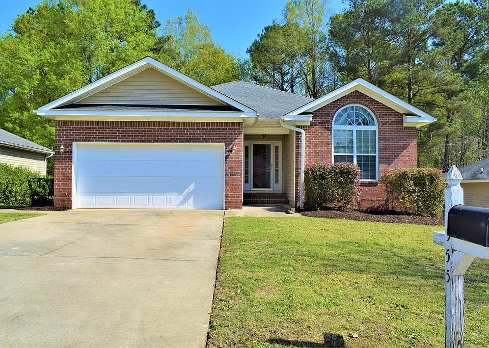 LOCATION!!! Highly desirable area in Columbia County close to I-20, Fort Gordon, shopping and schools. Under a mile to High/Middle/Elementary schools! Refrigerator, washer & dryer included! BRICK ranch with OPEN floor plan & Owner's suite privately away from other bedrooms. Open kitchen features a BREAKFAST BAR & is located off dining area. NO CARPET. Hardwood laminate in bedrooms, halls and living room. Tile in kitchen, dining, laundry and bathrooms. Spacious owner's suite with trey ceiling & ceiling fan. Owner's bath offers a garden tub, 2 separate vanities, large shower and large walk in closet. The remaining bedrooms share the convenient guest bath. Double car attached garage with SEPARATE ENTRY DOOR. Floored attic storage and WALK IN CRAWLSPACE. Enjoy the privacy FENCED YARD with patio and a NEW DECK perfect for entertaining and cook outs! Large lot with .32 ACRE backs up to STREAM and designated green space/wooded area. Home is FRESHLY SODDED. Move-in ready!