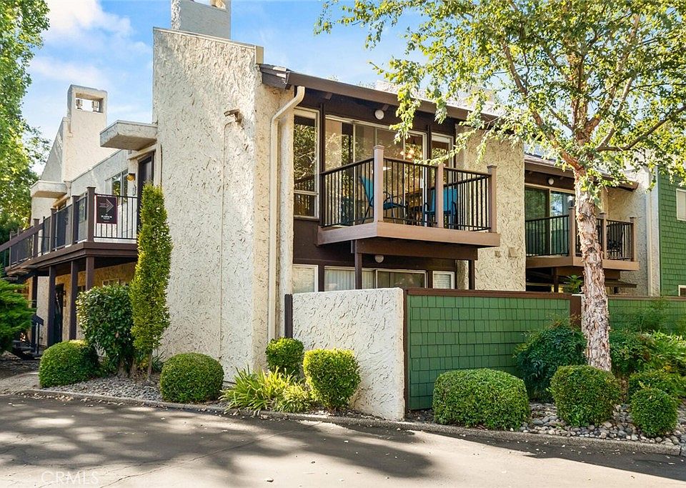 Welcome to your Chico vibe pad! This upstairs one-bedroom, one-bath condo in the popular Wood Oak community is full of fresh updates and fun perks. Kick back in the living room with vaulted wood beamed ceilings and a cozy fireplace, or step out to your private balcony with peek-a-boo views of Bidwell Park—perfect for morning coffee or evening chill time. Inside, you’ll find newer carpet, laminate floors, brand-new blinds, and fresh paint throughout. The vintage kitchen includes a refrigerator that stays, dishwasher, stove and plenty of counter space. Life at Wood Oak means you’re not just buying a condo—you’re scoring a lifestyle. Swim in the pool, soak in the hot tub, detox in the sauna, or wander across the street to Sycamore Pool in Bidwell Park. Plus, you’re minutes from downtown, CSU, shopping, and all the restaurants you love. If you’re looking for a fresh, fun spot in one of Chico’s most loved communities, this one’s calling your name!