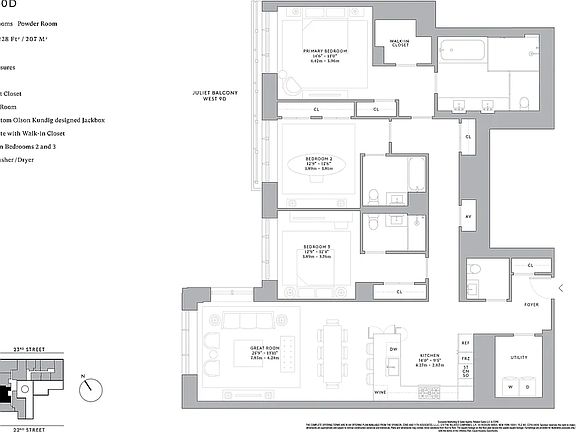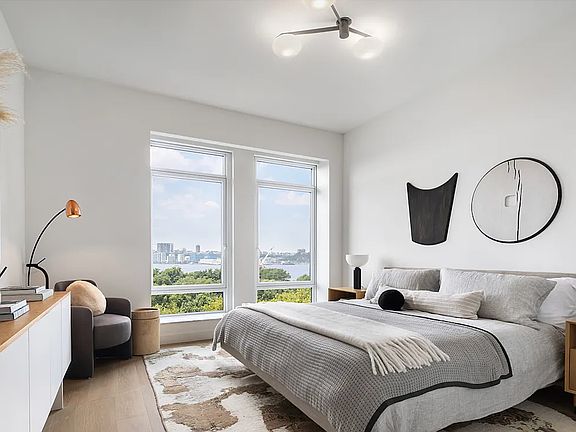 This three-bedroom, three-and-a-half-bathroom residence features an expansive 26-foot corner great room with floor-to-ceiling windows and sweeping Hudson River views. The airy, open-concept layout is ideal for modern living and entertaining.