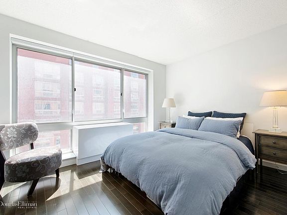 This high floor rarely available south facing 850sf sexy apartment is the largest one bedroom available in this building. In the North tower but with southern exposure overlooking the private courtyard and fountains, this exceptionally quiet home is flooded with sunlight throughout the day. The large open kitchen features granite countertops and stainless steel appliances, while the modern bath is finished with sleek Danze fixtures. Oversized windows, 4 large closets (one a huge walk-in), an in-unit WASHER/DRYER and mirage maple graphite floors complete the home. 555 West 23rd Street is located in the heart of West Chelsea's art district very close to the Highline Park. Chelsea Waterside Dog Park, Chelsea Piers and Hudson River Park are conveniently located across the street, and the famed Chelsea Market is just a few blocks away. Many of New York's finest restaurants, shopping, and nightlife are found in the immediate area. The Hudson Yards just a couple of blocks north features the Shed a cultural center, shopping center with Neiman Marcus and numerous restaurants with top chefs. 555 West 23 Street is a full-service luxury, pet friendly doorman building. This amenity-rich condominium features a 24 hour doorman and concierge service, newly renovated lobby, new fitness center, 9,000 square foot furnished/landscaped outdoor terrace with reflecting pond, club lounge redesigned by Nicole Fuller is currently under renovation, laundry room, bike storage, and attached garage operated by Imperial.*Advertised Taxes does not reflect STAR abatement*