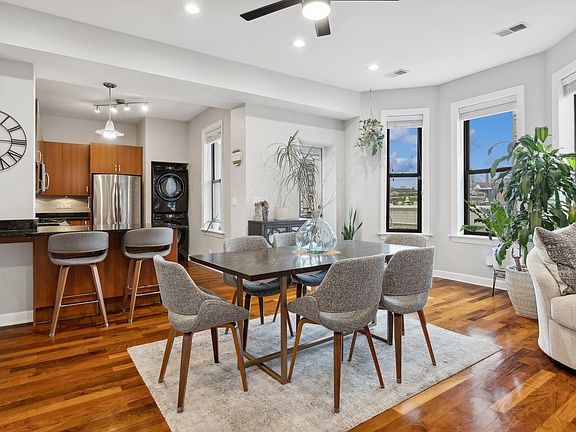 Perfectly situated on a tree-lined street in East Lake View, this home is full of light through the recently replaced windows. Overlooking Briar Street, this 2-bedroom, 1.5-bathroom home is just steps from all the shopping, restaurants and entertainment that Broadway has to offer. While maintaining the charm of this vintage facade, the units have been completely rebuilt and offer central AC/Heat, in-unit washer and dryers, dedicated water heaters and so much more. This unique layout provides the living, dining and kitchen to all flow seamlessly along the North wall of windows, including a private covered balcony. The bedrooms are tucked in the rear of the home for optimal quietness. The primary bedroom, with space for a king size bed, features a full ensuite with an additional powder room for guests. Current owner rents a parking space next door, other parking options nearby within the block.