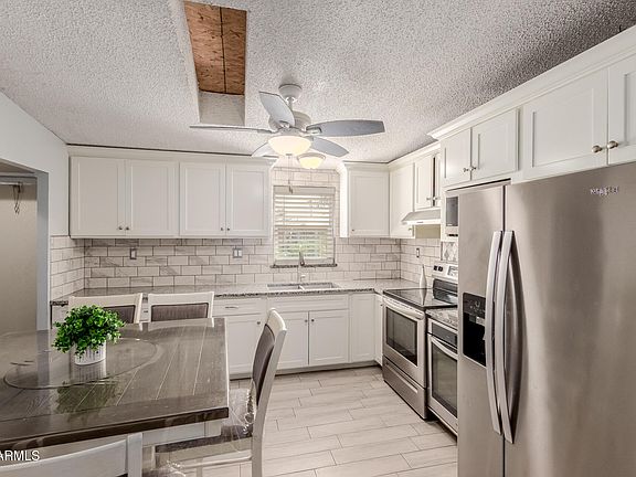 Remodeled top to bottom. Upgrades and luxury within budget. Granite countertops, subway tile backsplash, stainless steel appliances and beautiful white cabinets in the kitchen. Granite counter, tiled shower and wrap around tile in the bathrooms. All tiled flooring including bedrooms, cozy decorative fireplace in living room, neutral colors inside, New A/C in 2023, New roof in 2022, New water heater in 2024, Inside laundry. One of the few homes in the park with a sturdy shed built on site with concrete slab. In a cul-de-sac with no neighbors behind and more privacy than most homes in this park. Centrally located, walking distance to shopping, restaurants and bus stops. Family Park no age restrictions!
