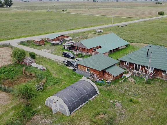 Spacious, single level Craftsman style home on 30+ fenced & irrigated acres. Lots of natural light but energy conscience with 2x6 framing, upgraded insulation package and efficient wood stove as well as electric heat. New maintenance free metal roof done in the last 2 years. Solid, hand-hewn red fir flooring in the main traffic areas. Kitchen boasts custom, solid wood, horseshoe shaped layout with a center island & all easy access drawers instead of traditional doored cabinets. Two large bedrooms, the master bedroom is connected to large bath with custom tiled soaking tub & whimsical vanity. Large living room sits just off of the southern facing sun porch. Property includes lots of outbuildings including the 2 car detached garage w/ added wood storage, a 32x52 shop w/ overhangs on both sides, a 20x32 greenhouse, a 8 x 16 potting shed, insulated well house, tack building & 16x32 storage building. Call Trudy Berge 406-493-8244, Charlie Scott 406-382-0704 or your real estate professional