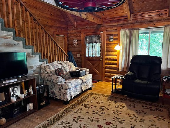If you are looking for log home and solitude on acreage this is it- City water- central electric with backup propane. Beautiful kitchen loft area with additional BR space- first floor MBR and bath and 2nd floor bath and BR. Close to everything buy end of hollow road with 12 AC of privacy.