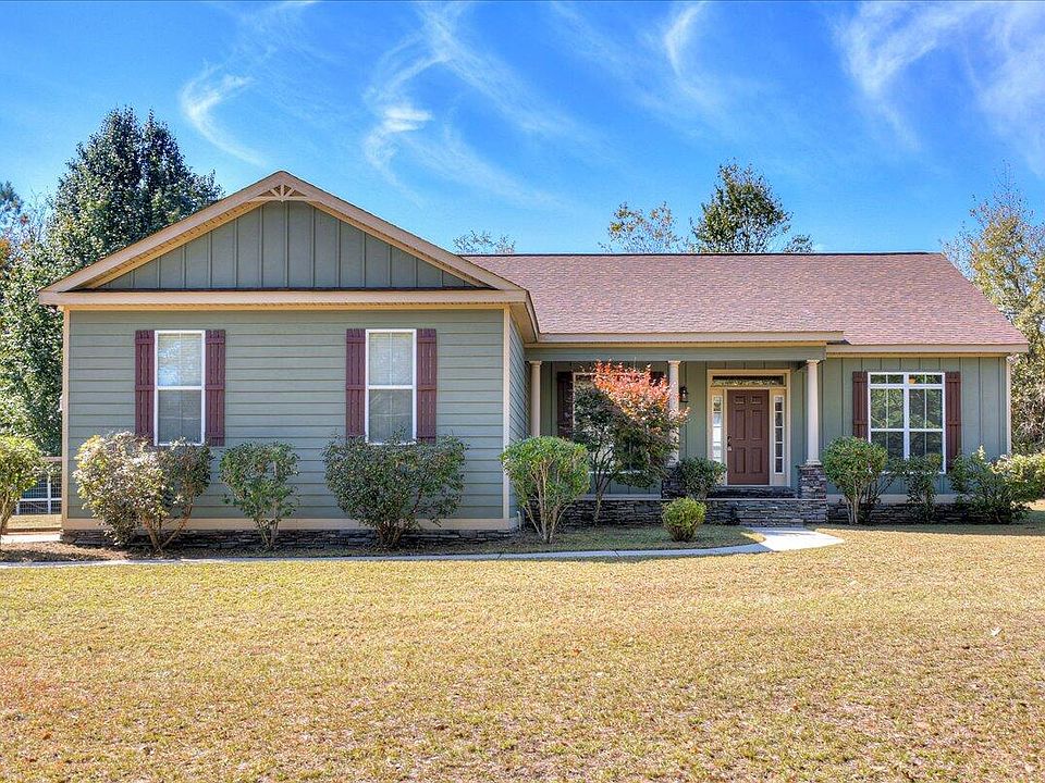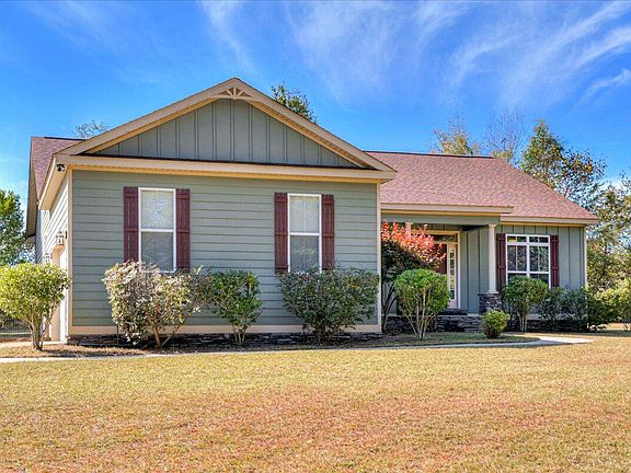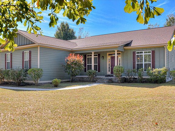 Beautiful custom-built ranch style home on nearly an acre of land while still in close distance to Fort Gordon, schools, shopping and more! Top notch features including hardwood floors, high vaulted ceilings and recessed lighting. A large chef's kitchen features a Coffered ceiling with recessed lighting, granite countertops as well as island and custom whitewashed cabinets. The great room boasts a beautiful wood burning fireplace surrounded by stone and a mantle that will stand out for Christmas which is right around the corner. Master suite features high trey ceilings with a spa styled master bathroom including a garden tub and separate tiled, rainfall shower. The screened in back patio leads into your back yard with a low-profile fence to keep your little ones or fur babies in while still enjoying the nature and country views and even includes an adorable chicken coop. Extra-large parking pad and garage for all of your toys for there is no HOA on this property.