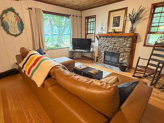 Inside, you'll find two bedrooms, a cozy loft space, one bathroom, and a natural wood-burning fireplace that sets the mood for crisp Michigan evenings. The spacious yard offers room to relax, garden, or simply take in the sweeping bay views.