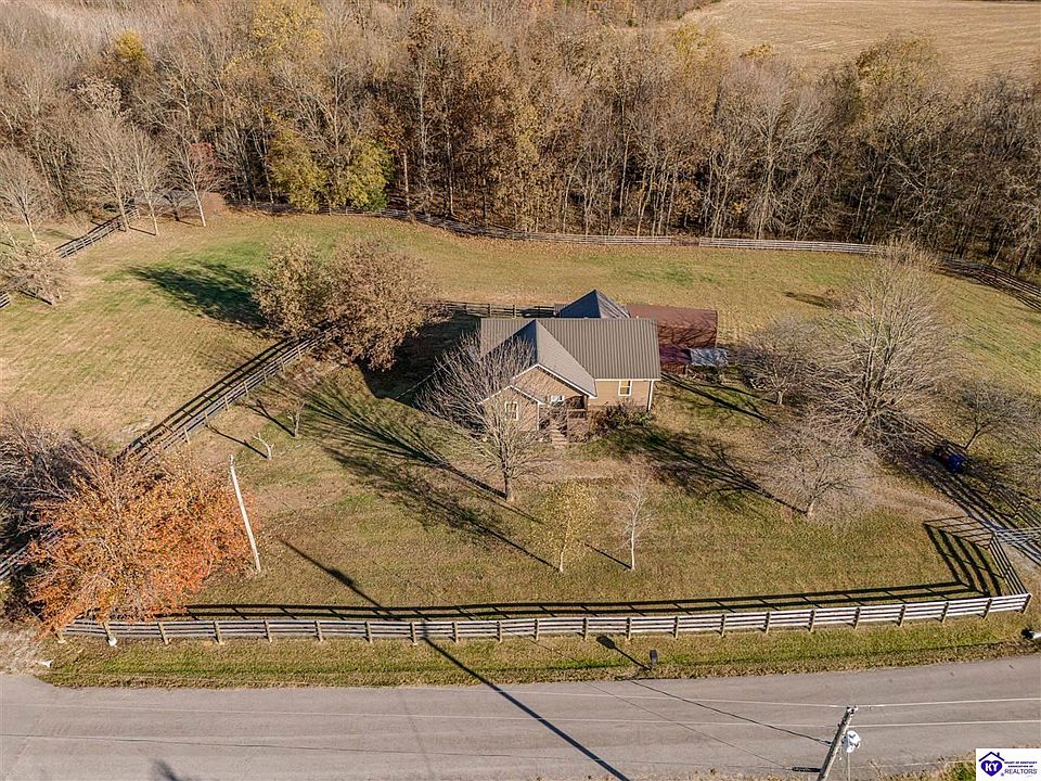 Discover serenity in this charming country home that has acreage that is as, pretty as a picture! 4.06 acres surrounded by nature and beauty, the property is encompassed with wooden fencing around the entire property, that was installed in 2021 for horses. There are also many fruit trees, and lush wooded areas on the back side of the property. In addition to a very spacious custom dog house, with electricity, a very large carport to park a boat or RV and a 24x30 Barn/shed on the property. This, open concept 3 beds 2 bath home, features beautifully custom oak cabinetry, hardwood floors throughout the main level. A cozy fireplace and a vaulted ceiling in the living room. The primary bedroom, with a decorative double tray ceiling also has the convenience of a private full bath and a laundry closet. There is plenty of storage space in the basement, along with an additional room with carpeted flooring and a closet. There is an option to completely finish the basement, that would allow for additional sq footage, and the benefit of a one car garage as well. Scenery awaits you, along with a screened in porch and a hot tub, that stays with the home.