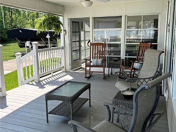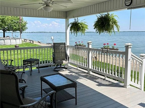 Lakefront! Welcome to Bass Landing! Enjoy all of the beauty that Grand Lake St. Mary's has to offer. This beautifully redone home features 51 feet of capped seawall. You will not believe the view from this covered porch. The entire house and 3 car garage has a new Steel Roof (2022). Relax in the 8ft. Hot Tub in the enclosed room just off of the porch. Enjoy your breakfast overlooking the water in the sprawling climate controlled 4 season room with a wall of windows. This stunning room has fresh paint and new wall to wall carpeting. The private Owner’s Suite is freshly painted with new carpeting and window blinds. Off the primary bedroom is the primary bath including walk in tub/jacuzzi with shower and ceramic tile floor. In the kitchen you will find ample counters with pull out shelves, granite countertops and ceramic tile floor. The large living room has a built in entertainment center, gas fireplace, fresh paint, new carpet, and the view of the Water from the large window overlooking the lake. Upstairs are two large bedrooms with new carpeting, and large walk in closets. Owned Water Softener and Water Filtration System. Tankless On Demand Water Heater. Central Vac. Just off the laundry room is the large 2nd bath with shower enclosure. Deep crawl space with concrete and 3 sump pumps. 3 Car garage with openers. Natural Gas Whole house generator. Deeded boat dock. Floe Boat Lift. Two storage units 16 x 29 feet each with loft, Unit 263/264. HOA Fee is 530 per year. Dock Fee is 65 per year. Storage Units 247.00 Per Year ea. This one is a MUST see! The pictures do not do it justice! Property is approximately 1700 Square Feet. If interested, Seller also has a 2023 Bennington Pontoon Boat for sale. Inquire for details!
