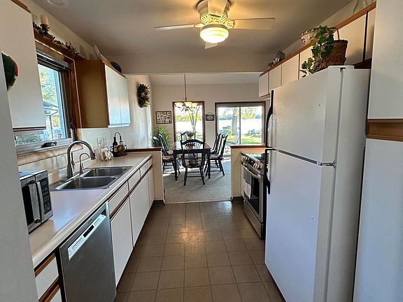 Experience the best of lakefront living in this fully furnished home on all-sports Joslin Lake. The open-concept main floor features vaulted ceilings, a cozy gas fireplace, and a galley-style kitchen that flows effortlessly into the living and dining areas. A sliding glass door opens to a spacious deck with a grill, perfect for outdoor dining and entertaining while taking in the serene water views. The main floor primary bedroom, full bathroom, and laundry add convenience and comfort. Upstairs offers another bedroom, a full bathroom, and a large loft that can easily serve as a non-conforming bedroom, home office, or game room. The two-car garage provides ample storage for vehicles and lake toys. Situated on the north side of Joslin Lake, this charming home enjoys abundant southern exposure and stunning sunrise and sunset views. Whether you're seeking a peaceful weekend getaway or a year-round retreat, this lakefront gem offers the perfect setting for swimming, boating, fishing, and relaxing on the water. Midterm and long term rental available through 6/1/2026.