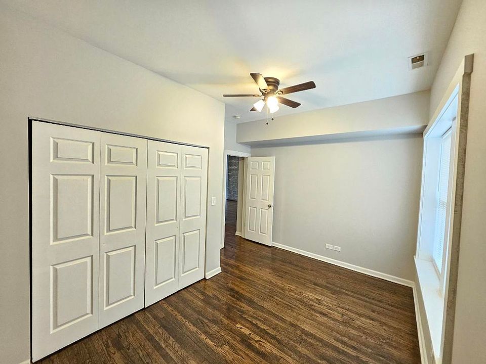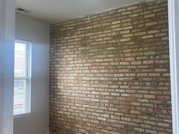 Vintage brick buildingRefinished floorFan in bedroomUpdated kitchen cabinets