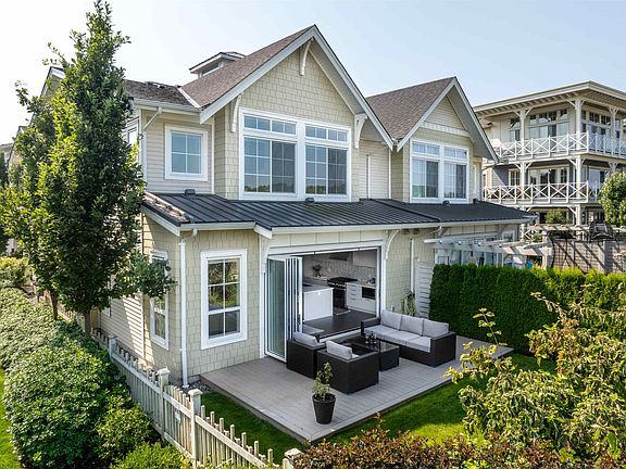 Offering stunning, peaceful views of the river and marina, this duplex home provides luxurious finishes and an easy-care setting! Open plan, with soaring ceilings and huge window areas for views and ample natural light. Custom kitchen offers integrated appliances including wine fridge, gas cooktop, huge central island, living/dining with cozy gas fireplace. Eclipse doors open this living space to a private patio and yard. Great for entertaining. 4 bedrooms+ 3.5 bathrooms up, along with laundry; open landing and den. Large double garage with additional parking for 2 vehicles on the apron. Part of Polygons' Master planned Hampton Cove community. Ownership comes with access to the exclusive Club House; Exercise Centre, Guest Suite, Outdoor Pool & whirlpool/hot tub. Shown by appointment.