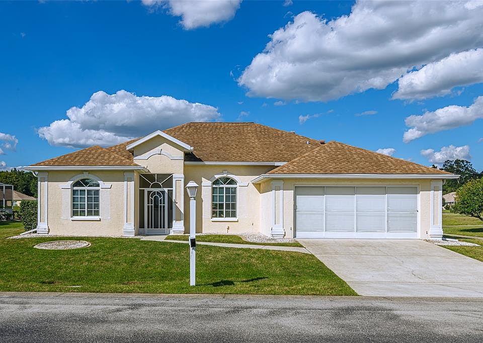 JUST REDUCED $40,000 FOR QUICK SALE!!! OUTSTANDING GOLF COURSE VIEW from this most desired floor plan in Ocala Palms. This house has an open floor plan with a large living room which as room for a large, screened television and a view of the large kitchen with built-in range, time-saving dishwasher, refrigerator and clear top range with a microwave. The dining room overlooks the kitchen for easy conversations. The laundry room is located off the kitchen for easy access and has additional shelves for storage. The Master bedroom has room for a king-size bed and ample furniture. This house offers a walk-in closet and a built in closet. The Master bathroom has a double sink vanity, walk-in shower, soaking tub and tile flooring. The guest bedroom has a view of the golf course and has a built-in closet. The guest bathroom has a full tub and shower and a vanity with plenty of storage. The Florida room has a great view of the golf course! This house is priced-to-sell! Ocala Palms is a gated active 55+ community located on North Highway 27 in Ocala, Florida. This community offers an 18-hole Golf Course for golf enthusiasts and Country Club-Style living for active adults. Golfers can also practice on the driving range and putting green so they can step up their golf game skills. It boasts a 19,000 square-foot clubhouse. Here is a sample of activities and amenities offered: Clubhouse/Amenity center, fitness center, Outdoor Olympic pool, hot tub, heated indoor pool, card room, arts & crafts studio, ballroom, library, billiards, bocce ball, shuffleboard courts walking & biking trails, volleyball court, tennis/pickleball courts, horseshoe pit, and croquet lawns. Ocala Palm is a very family friendly community and is located close to shopping centers, supermarkets, drug stores, restaurants, banks, doctors’ offices, hospitals, postal office department stores, etc. For family entertainment, Ocala features year-round public festivals events, canoeing, kayaking, paddle boating, horseback riding, fishing, etc. Close to tourist attractions like World Disney Parks, Universal Studios, Sea World, Bush Garden, World Equestrian Center, numerous beaches, etc. All measurements are approximate. Buyer(s) to re-measure.
