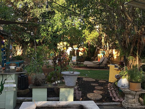 Live in a Unique tropical oasis less than one mile from beautiful Boca Raton beaches. Over 1/3 acre lot ( 12,000 sq ft lot) totally fenced in perfect back yard for your dogs and children to play with a totally private back yard with a large custom in ground pool, tropical landscaping, & outdoor kitchen pavilion, firepits and large circular driveway - no HOA fees, so bring your boat or camper. Lemon, lime, orange, avocado, key lime, mango, papaya, pink guava and pineapple all thriving - grow your own fruit salad. Wood floor - natural gas hot water tank & dryer has hookup for gas stove - has hurricane inpacked windows & Miami Dade rated shutters. Down the street from one of the nicest parks in Boca Raton Sand Pine Park bring your kids to play at the playground - come play tennis or racket ball - soccer or baseball - outdoor gym and running area to do your workout. Located in a great school district - Calusa Elementary -Boca Raton middle & High School - Please call for appointment - this home is a MUST SEE! No brokers please.