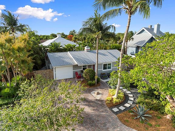 Welcome to your own private tropical sanctuary in the heart of Rocky Point, one of Stuart's most beloved coastal neighborhoods. With no fixed bridges and easy inlet access, you're just a short boat ride from world-renowned deep sea Atlantic fishing -- all from the private access marina at the end of your street! This beautifully curated 2-bedroom, 2-bathroom retreat is more than just a home--it's a work of art, thoughtfully designed for peaceful, laid-back living with touches of whimsy, sustainability, and charm throughout. Both spacious bedrooms are ensuite retreats, offering privacy and comfort. The galley kitchen is perfectly positioned and efficient, ideal for whipping up coastal meals before enjoying them al fresco beneath the stars. Step outside and experience the magic of the custom designed outdoor living spaces: Lush low-maintenance tropical landscaping surrounds you front and back with garden lighting and curated seating areas that invite you to unwind in the fully fenced back yard. The hot tub and outdoor shower elevate your evenings into spa-like experiences. Your front yard features a charming edible garden, while a shed with deep freezer adds extra convenience to store your fresh caught seafood. Recent updates ensure peace of mind: - Metal roof - New plumbing throughout - Brand-new water heater - Impact windows on front of home + accordion shutters for remainder of home. Bring your boat, RV, or extra vehicles - the oversized driveway was built for it! Best of all, you're just a 4-minute walk to the private-access marina, exclusive to residents of Rocky Point Estates. Drop your kayak in, take your paddle-board out, or simply enjoy a sunrise by the water. With full-yard maintenance service available for just approximately $140/month, this home allows you to enjoy the lifestyle you've dreamed of without the upkeep. This home is for the buyer who doesn't just want a house... they want an experience. A retreat. A lifestyle. Located minutes from vibrant Downtown Stuart, award-winning beaches, waterfront restaurants, and charming shops, this is Old Florida meets modern tranquility and it's waiting for someone just like you.