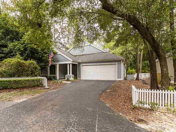 Charming 3 bedroom 2 bathroom house on cul-de-sac in Haile Plantation's Grahams Mill! With vaulted ceilings and skylights, this home is bright and and open. Over sized foyer opens into a spacious great room with warm fireplace and wood laminate floors. Large master suite features two walk-in closets! The large, enclosed Lanai is overlooking private back yard and is perfect for entertaining. Located within walking distance to Haile Plantation Village, golf course, tennis and racquet club! Excellent schools.