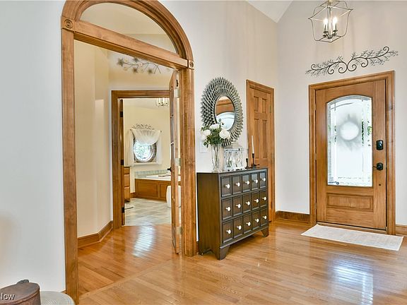 Surround yourself with sheer elegance and perfectly crafted styling found within this magnificent Poland Township estate! A location like no other, experience scenic, woodland tranquility as you peer from the elevated rear deck, off into the colorful woods. Below, a babbling brook runs underneath a wooden footbridge, leading down a fern-lined path to a waterfall-adorned creek bed. A lower brick patio is also available along with a secluded side yard. A winding cement driveway leads down to the attached two-car garage and lavish brickwork that quickly sets things apart from your peers. Manicured landscaping and stone offset the grand entryway. Step inside to take in the engaging open layout with tall ceilings and bespoke appointments at every turn. Tall pillars mark formal dining and its breathtaking arched window as hardwood flooring spills towards the spacious window-lined living room. Nearby, immerse your senses in the expansive kitchen where floor-to-ceiling cabinets join the stone countertops and large tile flooring. Sunbathed casual dining besets the rear patio entry, complete with a covered portion. Meanwhile, a stone-lined fireplace sits centerpiece in the adjacent family room. Down a short hall, a charming full bath accompanies a pair of must-see bedrooms, exuding comfort and style. First-floor laundry oversees both heated garage and basement access. Opposite the home, a master suite fit for royalty begins with an impressive bedroom and its substantial, window-lined view. A large walk-in closet makes storage a breeze. Completing the package, a decadent master bath enjoys a tile-lined whirlpool tub, glass block shower, sleek vanity, and hidden commode area. Below, the impressive full basement offers plenty of storage space, walk-out access, a third full bath, cedar lined sauna, and an open central rec space just waiting for your creativity. The brightly lit utility room includes a home generator while outside, a prominent shed is home to any equipment needs.