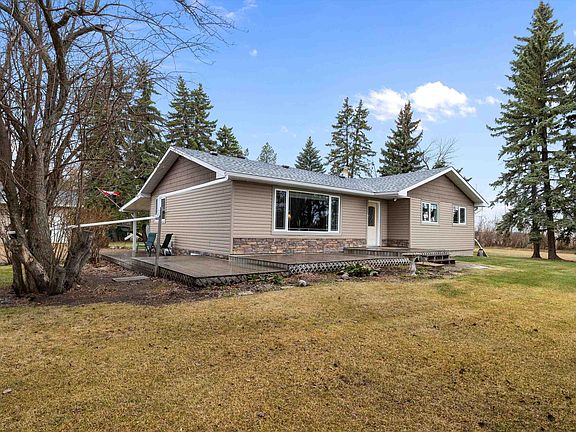 Great opportunity for this 10 Acres of nicely treed land with 2 residences only minutes to Town of Morinville and just off of Highway 642. Main residence is 1687 sq ft Bungalow on 5 acres with 5 bedrooms 3 bathrooms large kitchen with eating area. Fully Finished basement with Rec room and family room plus a 24FT by 44FT Triple Detached garage. 2nd residence is 1200 sq ft 1998 built Manufactured Home with 22ft by 24ft double detached garage. 40ft by 120ft shop is on 5 acres with Mobile 40ft by 60ft of shop is heated . There is only one drilled well for both properties but each has its own septic system. Two separate entrances one for each property great for families that need to be close together or you can rent out the Mobile home as extra income . Two 5 acre parcels are on separate titles. Great location close to MLC and highway 28 which leads to Anthony Henday.