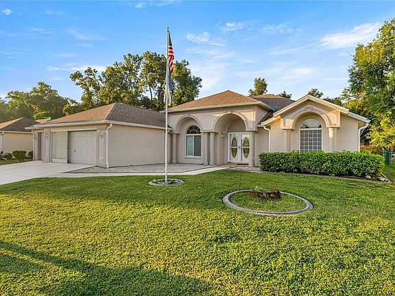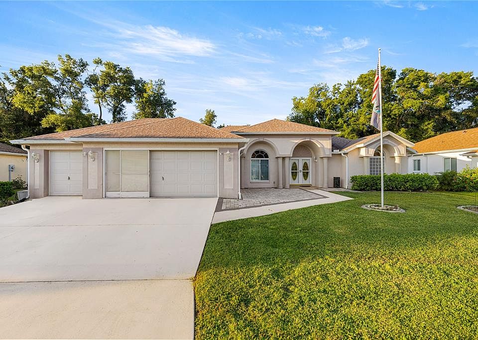 Amazing and spacious 2-bedroom, 2-bathroom home in the highly sought-after 55+ community of Ocala Palms, featuring a bright open kitchen with a large island, an oversized owner’s suite with double vanity, walk-in shower, and garden tub, plus a Florida room that opens to a screened lanai overlooking a private lot. The home also includes an oversized extended garage for extra storage or workshop space. Ocala Palms offers resort-style amenities including a 19,000 sq. ft. clubhouse, indoor and outdoor pools, fitness center, hobby rooms, tennis, pickleball, bocce, shuffleboard, horseshoes, and an 18-hole championship golf course with driving range and pro shop. With endless social clubs, arts and crafts, fitness classes, and community events, there’s always something to enjoy. Conveniently located near shopping, dining, hospitals, I-75, and just minutes from the World Equestrian Center, with 24-hour gated entry and optional RV storage, this home is the perfect blend of comfort, convenience, and lifestyle. ROOF 2022!.
