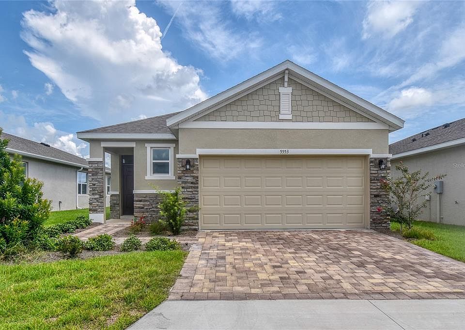 Incredibly popular ASTOR floor plan built by D R Horton is only 1 year old and features 3 bedrooms, 2 bathrooms in a split bedroom arrangement. Not everyone likes the dining and living on top of each other so this home features an open plan, yet dedicated dining space. WHITE and GREY color scheme throughout featuring 18" ceramic tile flooring throughout living areas. Kitchen features white 36" cabinets with crown molding and bump ups, huge single bowl sink, glasstop range and stainless appliances. Unique DEAKO light switches enables you to change out switches to timer, motion sensor, dimmer switches without paying an electrician - they are plug-n-play!! A child could do it! This is also a Smart Home - lock and unlock doors, garage door opener from your phone! This home also features beautiful full tile shower in master bath with seat and full tile surround in guest bathroom. This lot affords a lot of privacy with a more 'open' view behind and a privacy fence. This home is located in the 55+ area of the community and very close to all the FUN! and NO CDD! The HOA covers all lawn and landscape maintenance (including water for irrigation and maintenance of the irrigation system), high speed internet, membership in the amenities which include tennis, pickleball, bocce courts, horse shoes, fitness (indoor and outdoors) center and group fitness classes, miles of walking/biking trails, pools with poolside food and drink service, hot tub. On site restaurant and spa (residents get discounts) and golf requires no additional membership fee!