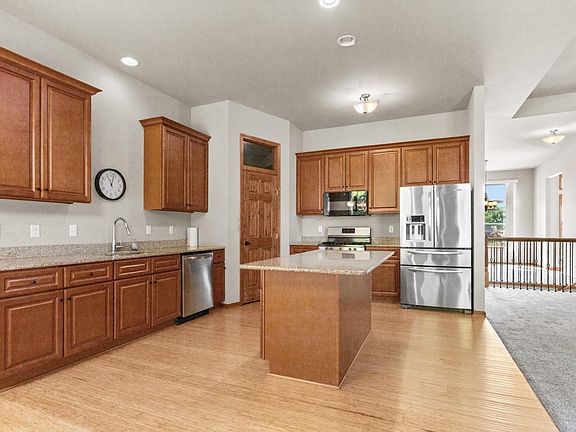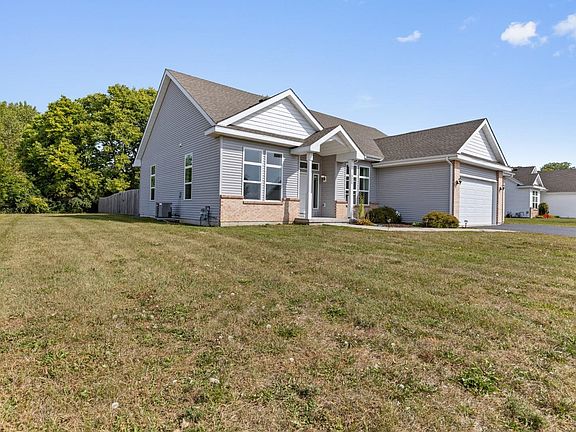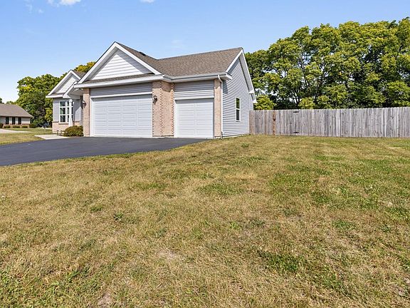 Newer split bedroom ranch, volume ceilings throughout, remote control fireplace in great room, formal dining & eating area in kitchen, center island and granite counter top stainless appliances, washer /dryer stay. 3 car garage, deck and fenced yard. Large corner yard with sidewalks.