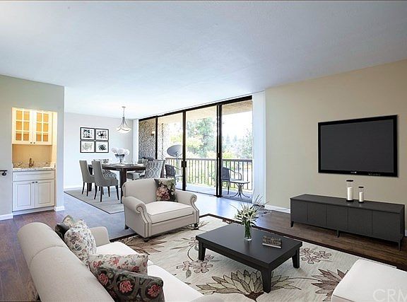 Absolutely beautifully, remodeled and furnished single story condo on the 3rd floor of the highly sought after and private Canyon Tower Condos. Security gate entrance! Beautiful views of hills, adjacent to the 1st green and fairway of Canyon Crest Country Club. Walking distance to the very desirable Canyon Crest Town Shopping Center & Restaurants. All new and upgraded kitchen and baths cabinets, all appliances including Refrigerator, plumbing fixtures, doors and cabinets hardware, quartz counter tops, new bath designer sinks, shower bath enclosure, stainless kitchen and wet bar sinks, fresh dual tone paint thru-out, LED lighting and electrical switches and wall outlets, and new beautiful wood looking laminate, new carpeting and freshened up kitchen tile flooring. Community pool/spa, Community game/meeting room. 2 ASSIGNED PARKING SPOTS! You must see this home, it will not disappoint you! Owner pays HOA, Trash, and Sewer. Tenant responsible for gas, and electricity.