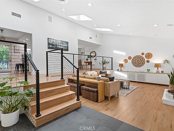 New exterior paint. New price! Exclusive and highly coveted Old Agoura, where charm meets modern elegance. This 5-bed, 3-bath home lives large and has incredible potential for even further expansion! Nestled in a peaceful rural community, this property is a true sanctuary for families, entertainers, and nature lovers alike. Step through the elegant arched slate-tile porch into a bright, contemporary interior featuring 12-ft vaulted ceilings, skylights, shiplap walls, oak-toned floors, and stylish tile accents. The airy living spaces are bathed in natural light and include an inviting fireplace, seamlessly blending warmth, and sophistication. The cook’s kitchen is thoughtfully designed for function and style, complemented by an adjacent dining room with picturesque garden views. The primary suite is a luxurious retreat, complete with private balcony and en-suite featuring dual sinks, concrete countertops, two-person rain shower, and two closets. Three queen-sized bedrooms and a modern family bathroom complete the upper level. The home’s lower level offers a fifth bedroom (currently an office), a chic bathroom, and laundry room. A spacious secondary living room with a fireplace, nook (perfect for a bar or kitchenette), and private entry also makes this level an optional guest suite or rental. The professionally landscaped backyard is an entertainer’s paradise. Relax on the expansive Trex deck or gather around the large gas firepit. The fully equipped outdoor kitchen includes a 40-inch gas grill, side burner, fridge, and stone countertops. Unwind under the pergola, enjoy bocce ball on the court, or plan for a future pool on the additional lawn area. The drought-tolerant front yard features a charming dry creek bed, enhancing curb appeal. Zoned for equestrian use, the property includes a large side yard with a 12-ft access gate, perfect for horses, animals, RVs, or other uses. A second garage offers endless possibilities—expand the home to 3,500 sq ft or create a 720 sq ft ADU with its own garden and driveway. Gym? Stable? Workshop? Conveniently located minutes from the scenic Chesebro trailhead and 101 fwy (but no fwy noise!) this beautifully remodeled home seamlessly blends rural tranquility with modern convenience. Parking for 6+ vehicles, including two driveways and two garages, and new septic in 2018, completes this exceptional offering. Don’t miss your chance to own a slice of heaven in Old Agoura, where lifestyle, luxury, and location converge