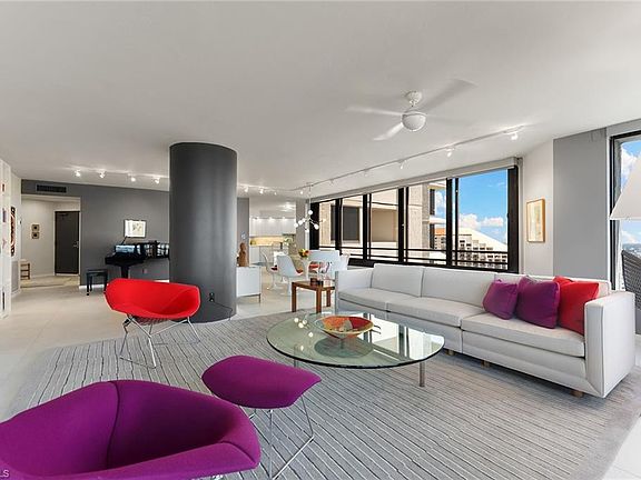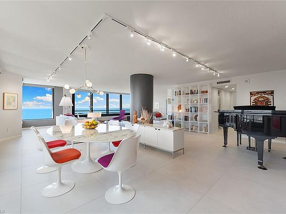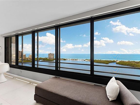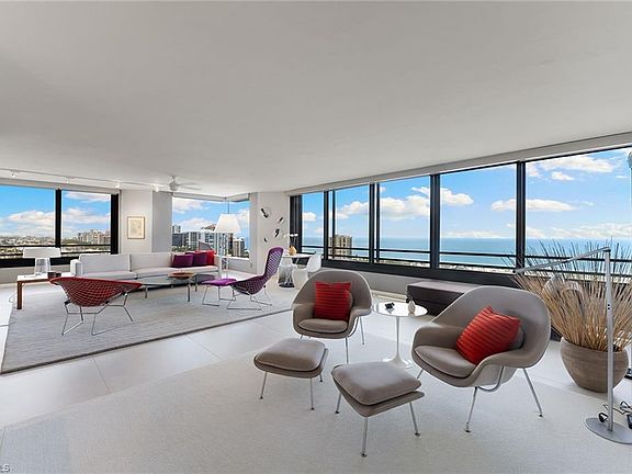 Commanding one of the enviable positions in Pelican Bay, this 20th-floor residence in The Heron offers sweeping views from the Gulf of Mexico to the city skyline of Naples and Park Shore. This condominium was designed by architect Robert Kleinschmidt and thoughtfully renovated in 2013, the home reflects a timeless modern aesthetic with elevated finishes throughout. A design-forward kitchen with Italian matte-white cabinetry, quartz countertops and premium appliances features a built-in high-top dining area overlooking Clam Pass. The primary suite captures sunrise and coastal views, with a spacious walk-in closet and fully renovated bath. The guest suite offers equal comfort with long-range views and its updated en-suite bath. The open-concept layout is enhanced by full-height glass windows that frame panoramic views and fill the living spaces with natural light. Thoughtful interior planning emphasizes the residence’s visual connection to the coastline while offering a seamless flow for everyday living and entertaining. The Heron is a boutique building with only 40 residences and includes on-site management, two guest suites, a fitness center with infrared sauna, tropical pool and spa. Ideally near Artis—Naples and Waterside Shops, this residence offers rare Gulf-front privacy with easy access to dining and cultural venues.