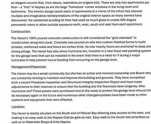 Nestled in the heart of Naples, this exceptional 21st floor end unit offering over 2400sqft, is a fusion of modern elegance and coastal charm, a fully renovated sanctuary where clean lines rule the day. A true gem offering serene living with modern luxury and is just waiting to be your idyllic retreat. Start your mornings with breathtaking, uninterrupted panoramic views of the Gulf and Clam Pass through expansive walls of sliding windows that open and two mitered glass corner windows, a design marvel that invites the serene beauty of sunsets year-round. This residence is a haven for culinary aficionados, boasting loads of storage space and stainless high-end appliances, including Sub Zero, which cater to your every culinary whim. The generous primary suite with Gulf front sitting area has LONG water views & lovely sleek bath offering two sinks, an oversized glass shower, ample storage, and a fully outfitted walk in closet. Guests are tucked away in their own suite with VIEWS of Pelican Bay plus full bath & even more closets. The Heron is an intimate, well-appointed building with just 2 units per floor and 40 units total: lives like having your own home in the sky! This gem has a fabulous great room style floorplan with forever views that take center stage. Immerse yourself in the Pelican Bay lifestyle replete with unparalleled community amenities: miles of beach, nature paths to explore, private beachfront restaurants for savored moments, and beach services that redefine relaxation. Engage in a variety of lifestyle events and wellness classes at the full-service fitness center, or indulge in the thrill of tennis or pickleball on pristine courts, with pro shops at your service. A community center, canoes, kayaks, and sailing bring adventure to your doorstep, while bespoke nutrition services in the wellness studio cater to your well-being. Ideally situated within walking distance to Waterside Shops & Artis Naples, convenience meets sophistication in this sky-high blank canvas where you can craft your dream home