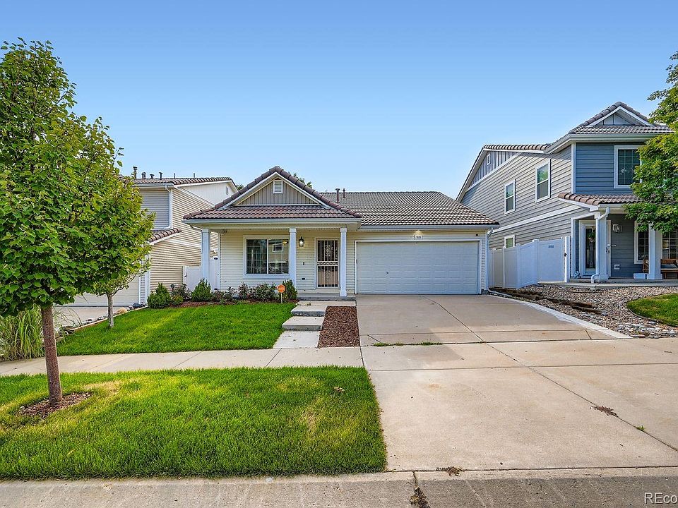 Welcome to this beautifully maintained ranch-style home in Green Valley Ranch, offering comfort, convenience, and single-level living. With 2 bedrooms, 2 full bathrooms, and nearly 1,400 square feet, this home is thoughtfully designed for both everyday living and entertaining. Inside, you’ll find a bright, open floor plan featuring a spacious living room, dining area, eat-in kitchen with modern appliances, and a smart thermostat. Additional features include walk-in closet, ceiling fans, in-unit laundry room. and double-pane windows for year-round efficiency and comfort. Step outside and enjoy a covered front porch perfect for relaxing mornings, and a private backyard with a covered patio, ideal for entertaining or unwinding. The home also offers a 2-car attached garage, off street parking landscaped yard with sprinklers, and partial fencing. Conveniently located in a professionally managed community with road maintenance, snow removal, and trash service included, this property is close to parks, schools, shopping, dining, and just minutes from DIA with easy access to public transit. Move-in ready!