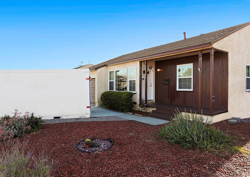 Rustic charm and a wealth of potential exudes from this three bedroom home. With a spacious interior and ample space in the front and back yard, 5555 Montair Avenue has much to offer. The living room has plenty of space and large windows that allow plenty of natural light. The carpeting can be replaced with hardwood floors for an added sense of spaciousness. The kitchen is large and has more than enough cabinet space. The parquet floor is distinctive and has a vintage vibe. The kitchen opens into a sunken den and dining area- an ideal space for entertaining guests. The red brick fireplace and laminate flooring enhance the rustic feel of the home. A sliding glass door opens into the expansive back yard. There are sizeable windows that brighten the area and boost the sense of roominess. The master bedroom has plenty of space and is a ready canvas for that unique touch. The attached master bathroom offers privacy and a roomy vanity. The other bedrooms are also spacious and ready to for a distinctive and stylish upgrade. The alluring back yard has a plethora of space for gardening and landscaping, as well as a patio area for outdoor lounging and dining. There is plenty of privacy on every side of the yard from the outside world.