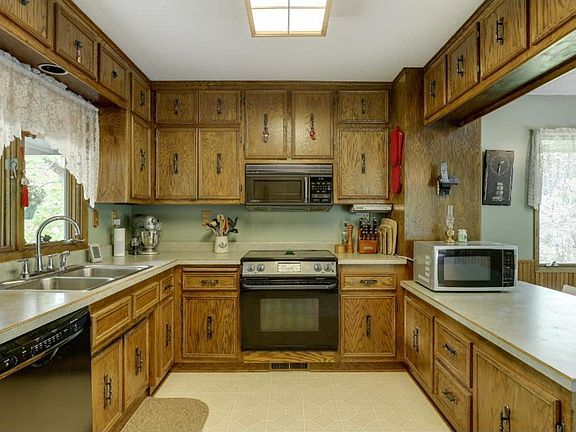 Only a job relocation make this home available. Almost 4 acres of privacy, lot has a mix of open lawn areas surrounded by heavy woods, there is even an orchard at front of lot! Home layout, 3 beds on 1 level, large kitchen with access to maint free deck, sep dining and large living room. LL is finished w/ a walk out. There is a detached 30x25 out building just waiting for toys. Many updates in the last 3-4 years include furnace, water heater, roof, AC, dishwasher, refrigerator, well pump...