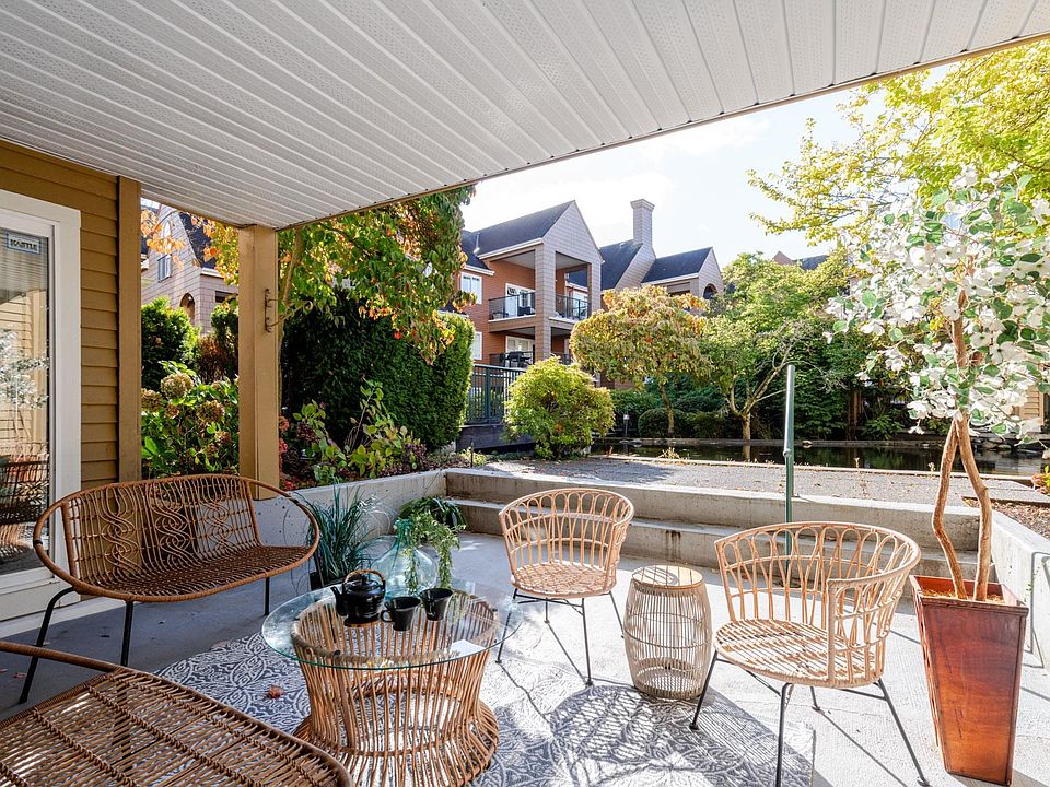 Welcome to The Burton at Windsor Woods, one of Tsawwassen’s most desirable communities! This beautifully maintained ground-floor home offers nearly 1,200 sq. ft. of bright, open living w/ 2 spacious bedrooms + 2 full bathrooms. The thoughtful layout showcases light laminate flooring, a well-appointed kitchen, generous bedrooms, and a spa-like ensuite. Step outside to your expansive 154sf partially covered patio overlooking the tranquil lagoon—an ideal setting for year-round BBQs, entertaining guests, or simply unwinding in peace. Easy walking access to transit, shopping, and restaurants, plus the convenience of secured underground parking + a fantastic recreation centre complete with a gym, sauna, and hot tub! Call today!