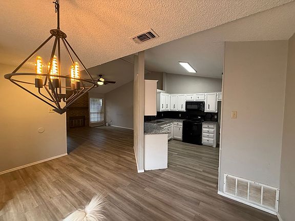 Updated light fixturesBlack dishwasherSmall fenced yardsCentral heat and airVaulted ceilingsUpdated hardware and locksWalk in closets
