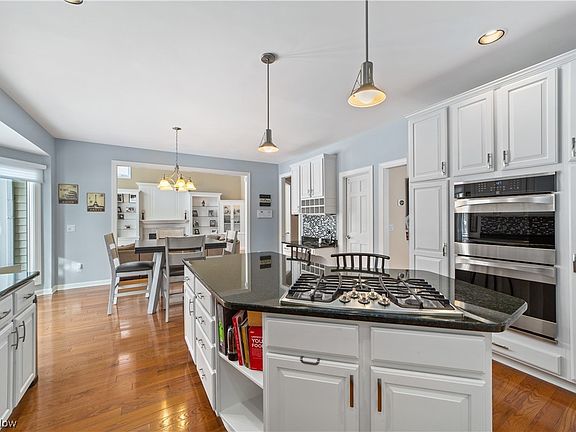 Fabulous opportunity in North Solon. Located on a quiet street, this home boasts over 4000 sft of updated space. Wood floors can be found on the first and second floor. Great functional and open floor plan greets you with a 2 story foyer. The office on the first floor has a bay window with views of the front yard and showcases French doors and a coffered ceiling. The sun filled living room is adjacent the dining room ideal for entertaining. The oversized white kitchen is a cook’s dream with ample cabinetry, tons of granite counter space and newer appliances. A large eat-in space with sliding doors to an incredible raised paver patio completes the kitchen. The great room has soaring ceilings with a wall of windows, a wall of remodeled built-ins and a fireplace. The second floor is equally impressive. Sprawling primary suite with an outstanding walk-in closet and a neutrally decorated bathroom with large vanities, walk-in shower and separate tub. Two bedrooms share a Jack and Jill bat