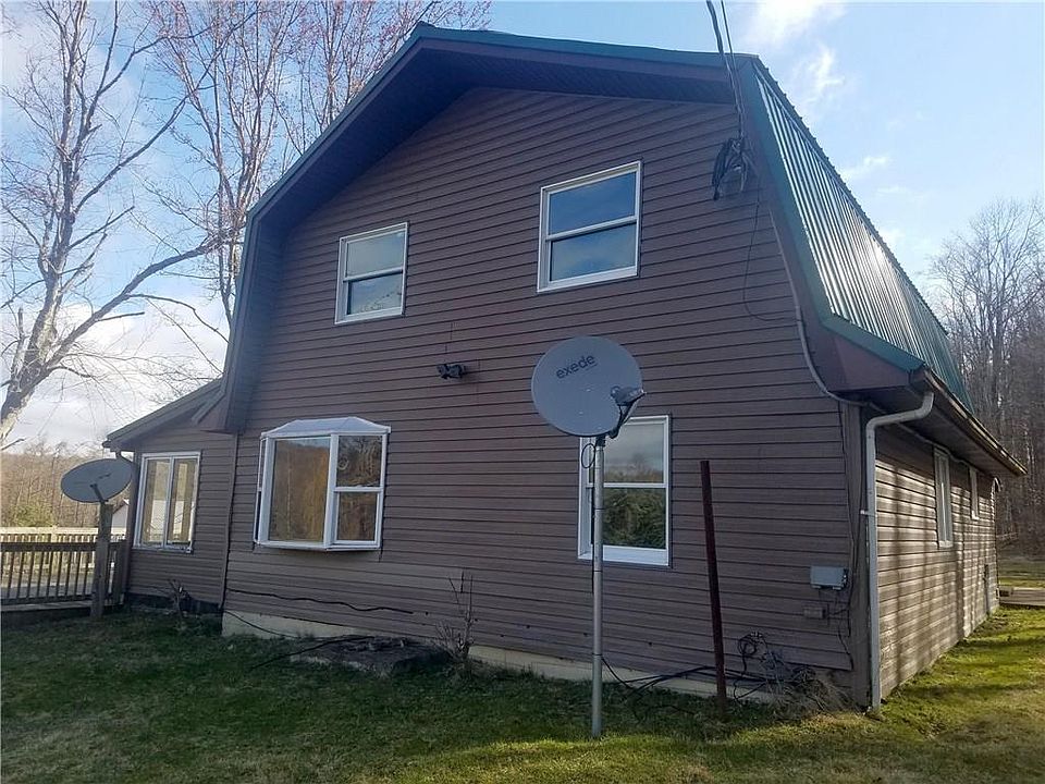 Looking for space between you and the neighbor? Take a look at this 3 bedroom home with 2 full baths. There is a full bath on the first floor with a room that could be used for a bedroom. There are 3 additional bedrooms with a full (3/4) bath in the master upstairs. Large living room with lots of natural light. Enjoy the view from the spacious deck (18X45) off from the dining room. Updated kitchen. Property is sold as-is and will require work. 25 +/- acres to roam - hobby farm, 4 wheeling, gardening. Detached 1 car garage (16X24) and pole barn (24X30) to hold all your "toys".