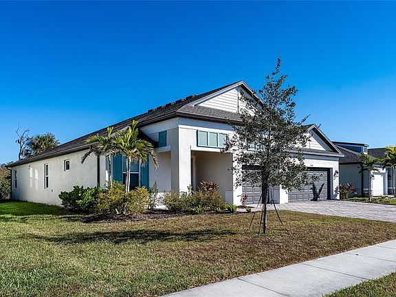 Welcome to this beautifully upgraded residence in the sought-after community of Trevesta, where four generously sized bedrooms and three full baths await. From the moment you arrive, you’ll appreciate the exceptional curb appeal: fresh landscaping, a paver driveway leading to the three-car garage, and a custom glass front door that hints at the high level of finish within. Enter into a bright, open floor plan that bathes in natural light and offers effortless flow. At the heart of the home is a chef-ready kitchen — stainless steel appliances, built-in oven and microwave, quartz countertops, stylish tile backsplash, large island, and a walk-in pantry with custom shelving — all designed for performance and style. The kitchen opens seamlessly to the great room, supporting both everyday living and entertaining. In the great room, master suite has oversized picture windows and window treatments add a touch of architectural character and help preserve the beautiful views of the outdoor space. The master suite offers a true retreat, complete with a large walk-in closet featuring double sides, and an ensuite bath with dual sinks, quartz countertops, and a beautifully tiled Roman walk-in shower with rain showerheads. The additional bedrooms are spacious, well-appointed, and ready for family or guests. Step outside into your private oasis with preserve view: a screened lanai and fully fenced backyard with no rear neighbors — perfect for relaxing, grilling, or hosting gatherings while preserving your view of open green space or nature behind. Additional upgrades include epoxy flooring, gutters, irrigation system, and hurricane shutters. Residents of Trevesta enjoy resort-style living: a zero-entry pool with cabanas, a splash pad and playground, a 5,600 sq ft clubhouse with on-site management, a 24-hour fitness center, and scenic lakeside walking and jogging trails. HOA fees include basic cable, internet and irrigation. Dunkin Donuts, Pizza, Jeremiah Ice, dollar stores, Pet stores right in front of the community, and Publix is 5 min away. With quick access to major highways, world-renowned beaches, and the cities of St. Petersburg, Tampa, Bradenton, Lakewood Ranch and Sarasota, this home offers thoughtfully designed modern upgrades in a tranquil setting. Don’t miss the opportunity to make this stunning Trevesta home yours!