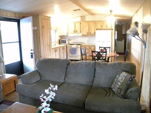 For more information on this property, contact the Listing Agent, Bill and Sue Groth at (520) 730-9702 or BillSueGroth@comcast.net. Ground set Palm Harbor home/no steps. nice screen room and full length carport. Home has dual pane windows, vaulted ceiling, NEW LAMINATE FLOORING thru out except in bedrooms, recent new shingle roof and is under termite contract. AFFORDABLE - OWN YOUR OWN IN THE SUN. Enjoy golf, pool, clubhouse and planned activities in Tucson Estates. Visit Tucson Estates website. Adult community where you own your own land.