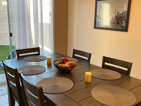 Highly upgraded 4 year old home close to the strip and Raider Stadium. Two tone custom paint, 9 foot ceilings on the first floor along with many other upgrades. Upstairs there are 4 bedrooms and a loft. Downstairs there is an optional 5th bedroom/office. Master bedroom has large walk in closet and mountain views. Bedroom 4 shows like a mid size second master with its own walk in closet and peak view of the strip. Second floor laundry room. Landscaped yard with easy to maintain turf and rock. Garage has added insolation which keeps it 15-20 degrees cooler in the summer and warmer in the winter. This home can be offered furnished or unfurnished at no additional cost. Tenant pays all utilities. Generally minimum 12 month lease. Please inquire if interested in less than 12 months.