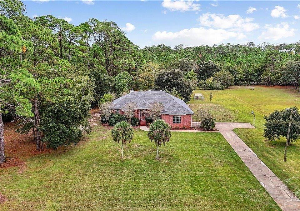 Wonderful opportunity to own a beautiful one-story 4 bed 2 bath home with a split floor plan sitting on over 2 acres of land. This lot provides ample space for storing your boat and RV. The rear of the 2-acre property connects to Garcon Shores Drive, potentially offering an opportunity to build another home. There is also room for accessory buildings. This beautiful home features a roof replaced in 2020, a side-entry garage, an alarm system, and a sprinkler system. The septic system has been recently inspected and pumped. The home is located in a subdivision with a long entrance, creating a private community feel, nestled among million-dollar waterfront homes. Enter this wonderful floor plan through a grand entrance with a formal dining area on your right. The home includes a large family room with a beautiful wood-burning fireplace, perfect for chilly evenings, and a spacious kitchen ideal for entertaining or gatherings. The large owner's bedroom is situated off the kitchen, while the other rooms are located down a hall off the living room on the opposite side of the home. Located less than 5 min to 1-10 and less than 30 minutes to Pensacola's award winning downtown! Make your appointment to view this home today!