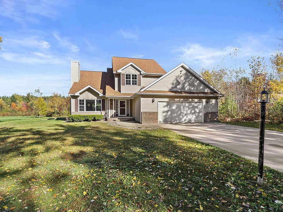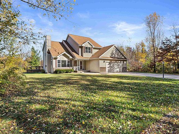 Welcome to a beautifully situated two-story home in the Town of Plover. This home is located in the desirable Prainwood Estates subdivision and placed on a generous 1.39 acre lot. Upon walking in the front door you will instantly notice the 17' high living room ceiling and beautiful new LVP floors. Tons of natural light streaming through this house on all sides! An impressive staircase leads to the second floor which holds 3 bedrooms, one of which is the primary suite including a generous walk in closet and a huge bathroom. The main floor also includes a dining room, laundry room, media room and a gorgeous newly remodeled kitchen. The kitchen proudly claims dramatic granite counters, a dinette area, a wall pantry and patio doors leading to the expansive deck. The deck is ready for an entertainer's dream party and has a shelter house that could be used for a game room, hot tub, storage or whatever you can imagine. The basement is finished and ready for your finishing touches too! Per seller: the neighborhood does have equal ownership in Bonnie Lake just across the street. Sch