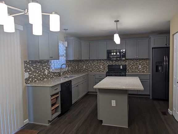 Spacious home with beautiful custom new kitchen featuring gray cabinets with soft close doors and drawers and quartz countertops and trendy backsplash. Updated lighting. Luxury vinyl flooring on first floor and upper-level bathrooms. New stylish high-quality carpet and padding in all bedrooms and living areas. Huge full basement with rough in for full bath. Primary bedroom suite with bonus room, big walk-in closet, bath with soaking tub and separate shower and double vanity sink. Additional spacious 3 bedrooms with huge closets as well. Full bath with double vanity sinks. Big fenced yard with freshly stained multi-level deck. Professional landscaping with loads of perennial flowers including roses of all colors. Great convenient location!